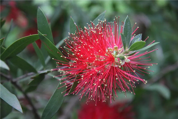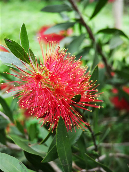 原来这种植物叫红千层(Callistemon rigidus),桃金娘科(Myrtaceae)红千层属(Callistemon)的常绿灌木或小乔木,因为圆柱形的穗状花序酷似瓶刷子,被称作瓶刷子树(Bottlebrush),不过它可比试管刷漂亮多了!