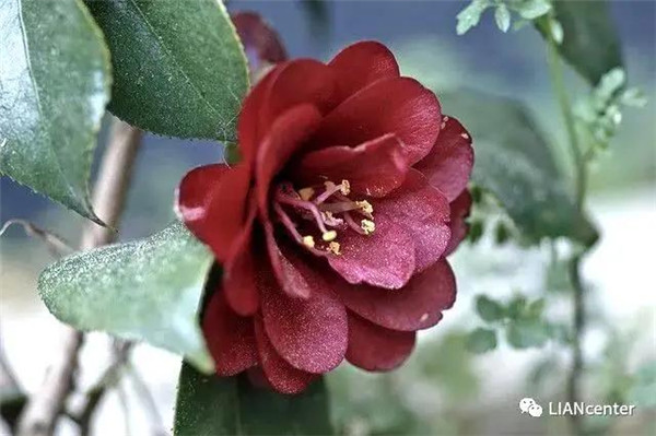 黑椿花瓣是黑红色,有蜡质,花瓣向外翻卷,是半重瓣的小型花朵,有着红色的花丝和黄色的花蕊,每年四五月开花。