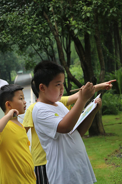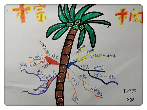 室内讲解环节中,老师向小朋友们介绍了有关棕榈基本知识及其用途、大棕榈和小棕榈的外形区别,并用棕榈的叶子和果实的实物进行了说明,特别讲述了果实落地的情形。然后,向小朋友介绍小棕榈在植物园的很多地方都有分布,并向小朋友提出了一个问题“大棕榈大部分是人工移栽的,那么小棕榈是怎么来的?”小朋友们思维十分活跃,有说是水流传播的,有说是风力传播的,有说重力传播的,有说是动物传播……在这些假设的基础上,邀请小朋友到园区去做大棕榈和小棕榈的分布调查,用调查的结果验证这些假设是否合理。