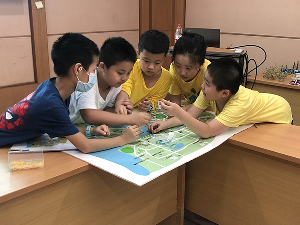 室外探索之前,老师让小朋友们玩了破冰游戏,让大家了解了“小侦探”的特征,并让大家相互熟悉。接着,将小朋友分为三组,分别沿着不同的路线对大棕榈和小棕榈的分布情况如实调查,并在地图上详细记录。经过一个小时的调查,小朋友把调查结果带回了教室,用不同颜色的图钉,将大小棕榈分别在大地图上标示出来。根据地图显示结果,结合棕榈的果实、生长位置和环境等信息,引导小朋友对棕榈种子的传播方式做出推测。