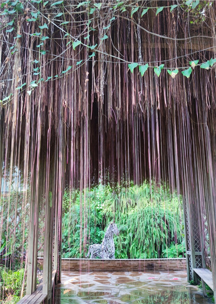兰花室的锦屏藤,红丝线一样长长的气生根,如少女秀发般的飘逸