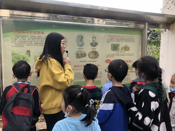 接着来到户外,老师带领大家走进武汉植物园国家级猕猴桃种质资源圃,通过果实拍照游戏,近距离用心观察着各种各样的猕猴桃,“老师,我发现了一种猕猴桃,长的好大呀”,“老师,我观察到一种猕猴桃,长的像小黄瓜”,“老师,我也发现了一种猕猴桃,和平时见到的都不一样,长的像指头肚一样小,果皮上还有很多点点”......孩子们十分兴奋,快乐的分享着自己的发现。
