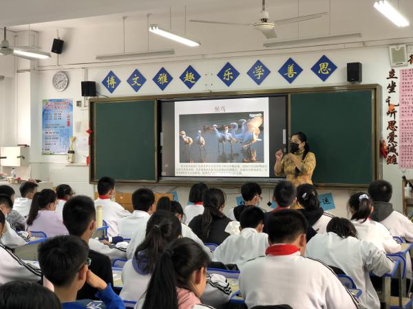 随着秋冬季的到来,候鸟也开始了迁徙。湿地是候鸟长途迁徙中栖息的地方,许多的湿地植物,成为了鸟类天然的遮蔽所,湿地丰富的鱼虾,也成为了鸟类能量补给的来源。因此,位于迁徙路线上的湿地,又被誉为“鸟类的天堂”。11月18日下午,“湿地——鸟类的天堂”生态研学课程走进武汉市晴川初级中学,在七年级段开展。课程由李俊皞老师主讲,赵胡雯老师助教,课程由室内讲解和户外探究组成。