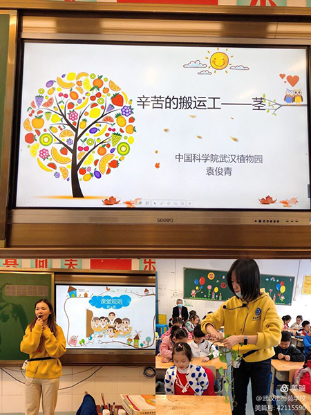 本次“生态研学进校园”活动是由武汉市公园协会主办,武汉植物园承办,将“花儿传粉的策略”“五官感受猕猴桃”等深受学生喜欢的课程送入中小学校,活动旨在围绕“自然生态”用不同主题,多种形式引导学生学习,在寓教于乐的过程中,了解自然,了解生态,从小树立正确的生态观,夯实立德树人的基础教育工作。