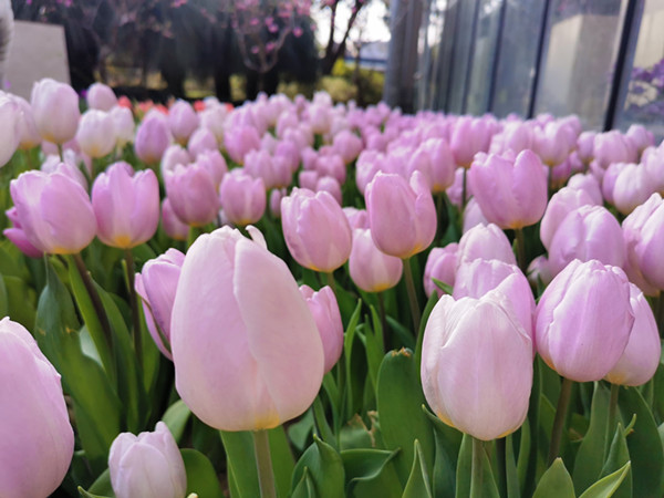 武汉植物园春节还将推出球根花卉展。通过催花技术,3万多株郁金香等球根花卉已经提前迎来绽放。目前,一框框含苞吐蕊的郁金香已经搬出温棚,等待着被移栽到花坛中。