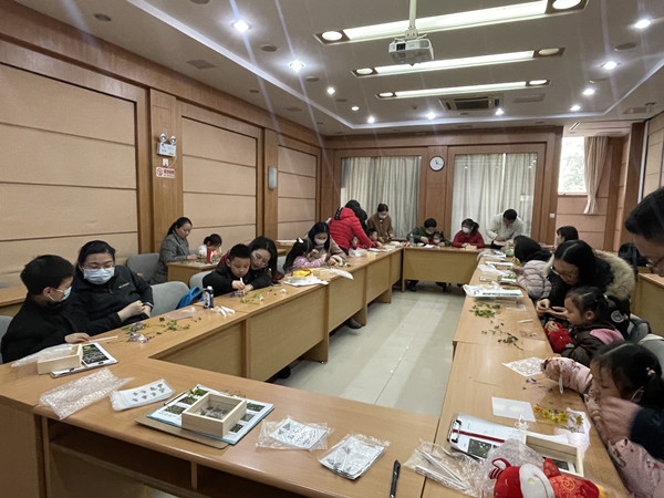 本次课堂分为破冰游戏,户外观察和手工制作三个部分。课前,袁老师让孩子们闭上眼睛,随后睁开,看看老师的衣服上发生了什么变化,激发起孩子对于观察的热情;通过破冰游戏“野花开”,让大家互相熟悉,孩子们在草坪上牵着手,转着圈,发出阵阵欢乐的笑声;户外观察时,袁老师给每个孩子发放一张任务单,让大家分散寻宝,并用自己的方法记录下花朵的特点。春风时节里,天气虽然有些微凉,但孩子们时而在草坪上奔跑着,时而俯身细细观察,忘我地完成着老师布置的任务。大家绕着中心草坪四周的绿化道漫步前进,袁老师向孩子们介绍着关于野花的知识。“这朵花的花瓣有四片,摸起来毛绒绒的”,“这个黄色的是菊花吗?”孩子们在观察中不断地向老师和家长提问,在任务单上画出自己找到的野花,现场十分热闹。最后,老师给大家发放镊子以及标本框,孩子们化身小小“魔法师”,利用收集到的野花夹入标本框,家长们也积极配合,制作了精美的野花相框。