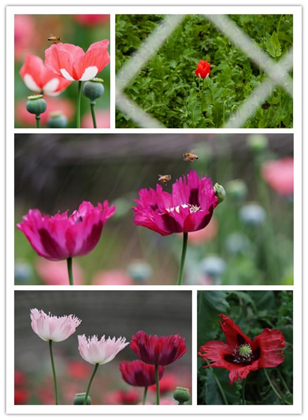 今年,武汉植物园对罂粟笼子进行改造。原来的黑色大铁笼被拆除,五个白色的罂粟果实状笼子成为罂粟新“关押地”。笼子为罂粟蒴果样式,形状为圆润的球形,高低不一,矮的笼子3米左右,高的6米有余,错落有致地坐落在本草园中部。五个笼子面积共200平方米,种植罂粟470株。武汉植物园根据罂粟的颜色和瓣型将罂粟分笼种植。5个笼子分别种植了单瓣红色、单瓣紫色、单瓣白色、重瓣以及混色的罂粟。除了常见的紫色、红色罂粟,还展示了白色、粉色、杂色罂粟,共10余种花色。