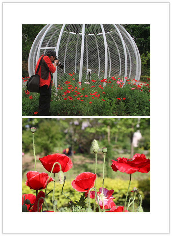 在罂粟属的植物中,还有个常见的观赏花卉虞美人,因为两者花期一致,外形相似,常常被公众混淆。在罂粟笼子的周围,武汉植物园还种植了上白株罂粟的“姐妹花”虞美人,方便市民对比鉴别。