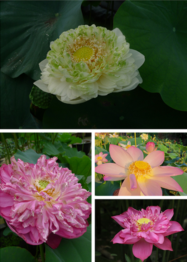 16370平方米的占地面积内,收集栽培了荷花品种200多个,包括藕莲、籽莲、花莲三大类,不乏‘太空莲’‘友谊牡丹莲’‘千瓣莲’‘菊荷’等珍品。