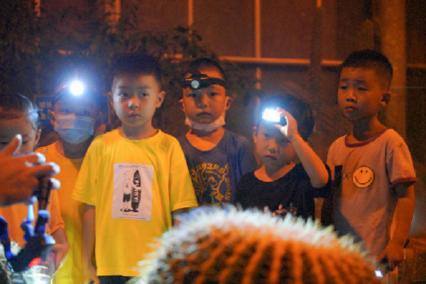 9月4日是中小学生秋季开学后的第一个周末。这天,武汉植物园科教研学系列活动之一“植物园奇妙夜”夜游活动受热捧,吸引了39组亲子营家庭、18位独立营小朋友等近100人参与。参加活动的小朋友们在自然导师的带领下,学习植物科普知识,采集植物果实,寻找暗夜精灵,置身于奇妙的动植物世界,感受大自然的奇幻色彩。