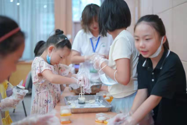 科学导师带领小朋友们制作冰皮月饼