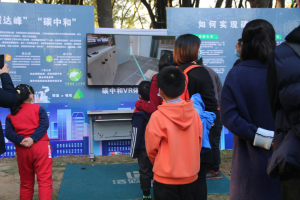 小朋友参与“碳中和”虚拟现实游戏互动体验
