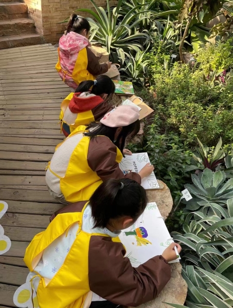 本次活动将自然探索和创意手工绘画相结合,引导孩子们走进自然,自由发挥,探寻四时风物变化,感受自然与艺术的连接,将“自然自在”的理念融入孩子心中。