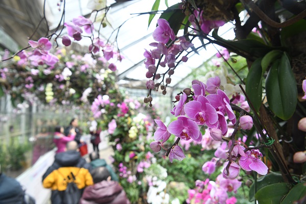 花朵成簇开放,色彩明媚艳丽,花大色艳的热带兰看起来热情奔放,特别有节日氛围。景观温室内,万株热带兰卯着劲绽放,颜值一直在线。兰花展奇花云集,造型奇特的魔鬼文心兰,珍贵的黑色兰花瓢唇兰、长相奇特的吊桶兰、花型似章鱼的章鱼兰正在开放,看点十足。
