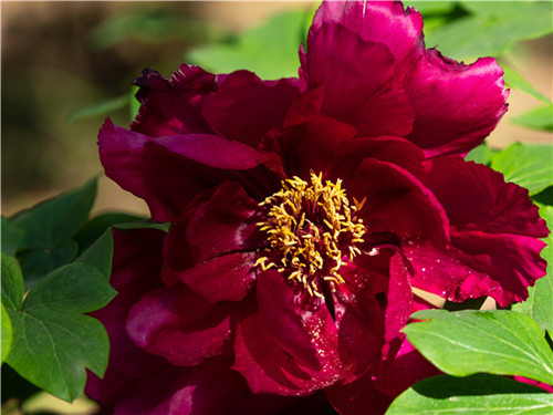 日本牡丹‘岛锦’一花双色,花朵红白相间,或是红色花瓣中间长着白丝,或是如玉白色打底,粉红色丝线点缀在花瓣中间,为少见的复色牡丹。日本寒牡丹‘寒樱狮子’两季开花,冬季初放,春季再现,是非常难得的两季开花牡丹。来自日本的墨色牡丹‘初乌’‘群乌’,不仅色彩惊艳,花瓣还有着绸缎般光泽,也是黑牡丹中的佼佼者。