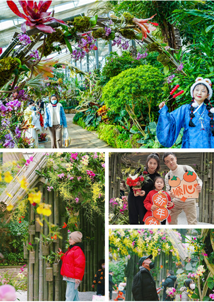 假期在武汉植物园赏花过节,是不少游客约定俗成的仪式感。新年伊始,游客徜徉在盛开的热带兰、山茶花花海中,感受节日的浪漫。在景观温室,8000株色彩缤纷、姿态万千的热带兰浓情绽放,为新的一年开启美好“兰”图。游客或呼朋引伴、或携一家老小出游,在温暖的热带温室中,感受兰花等热带植物带来的生机与活力。不少汉服爱好者还身着汉服漫步在幽兰绿树中,衣袂翩跹,人花两相宜,十分养眼。寒冬凌冽,山茶园内山茶和茶梅却傲寒开放,红艳艳一片格外迷人。新晋“网红打卡地”本草园精品园也吸引了不少游客驻足。游客走进大自然,沐浴阳光,闻着花香,走走停停拍拍照,沉浸式享受自然的美好。