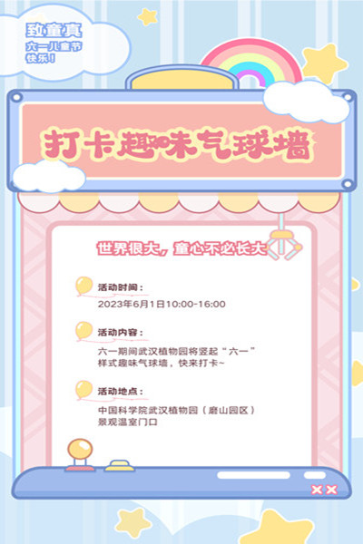 六一儿童节怎能没有仪式感!在景观温室门口,大大的“61”气球标志墙,让入园的大小朋友们体验到满满的节日氛围,拿着寻觅到的气球,再到此处打卡,宣示一份节日的快乐。