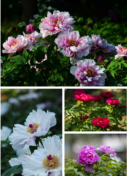 牡丹品种繁多 ,色彩丰富 ,尤以黄、绿为贵。牡丹园收集的绿牡丹珍品绿幕隐玉、‘豆绿’也已经透出绿意。‘绿幕隐玉’为绣球型牡丹,花色淡绿,十分雅致。‘豆绿’是纯正的绿色牡丹,花同为绣球型,因色如青豆而得名。黄牡丹将在最后压轴登场,‘金阁’、‘黄冠’、‘海黄’明媚耀眼,一展牡丹的国色芳华。园内还有红艳的‘首案红’、‘红艳争辉’、‘霓虹焕彩’,泛着优雅白的‘白雪塔’,紫红色的‘今紫’,如少女般明丽的粉色牡丹‘贵妃插翠’‘火鸟’,能够花开二度的寒牡丹品种‘寒樱狮子’,一园好春色,万蕊斗鲜妍。