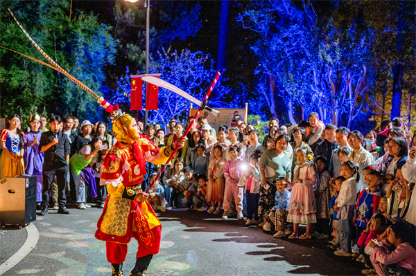 白天赏花看景,夜晚沉浸光影,从白天到夜晚精彩不打烊。夜幕降临,星光作伴,华灯开启,“洛神繁花夜”点亮璀璨光影。小朋友们最喜爱的西游主题表演再度回归,陪伴孩子们度过欢乐假期。孙悟空身披战袍,手持金箍棒,酷炫的猴戏艺术表演点燃了假日激情。