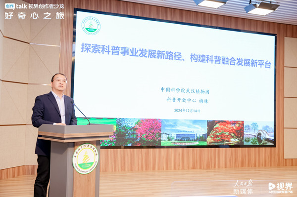 梅林代表武汉植物园对活动的举办表示热烈的欢迎,作为开场嘉宾,他为大家带来了题为“探索科普事业发展新路径 构建科普融合发展新平台”的主题报告。他详细介绍了武汉植物园在科普方面的探索和实践,并分享了在推动科普内容创新方面的宝贵经验。人民日报智慧媒体研究院创作者运营负责人魏雪莲介绍了人民日报视频客户端“视界”的发展历程和运营现状,特别是在知识品类内容方面的布局和规划。她表示,“视界”将继续加大对知识科普内容的投入,为创作者提供更多展示才华的平台。