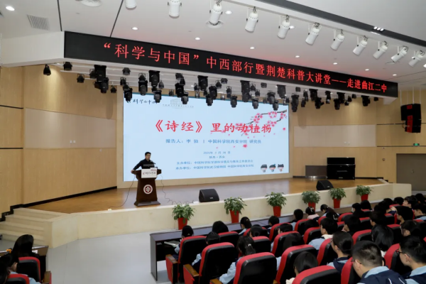 春意渐浓的三月校园里,一场跨越千年的文化对话正在上演。3月12日,“科学与中国”中西部行活动走进西安市曲江第二中学,中国科学院西安分院科学家、陕西省生物农业研究所副所长李勃博士应邀莅临,为高一年级师生献上了一场题为《诗经里的动植物》的科普盛宴。这场别具匠心的讲座,在春日的暖阳中架起了连接传统文化与自然科学的虹桥。