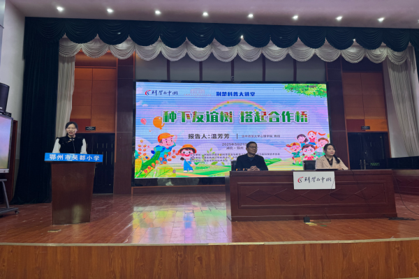 科普春风润童心,心理护航助成长。3月21日,“科学与中国”中西部行暨荆楚科普大讲堂走进鄂州市吴都小学报告厅内,华中师范大学心理学院温芳芳教授为五至六年级学生带来《种下友谊树,搭起合作桥》主题科普讲座。