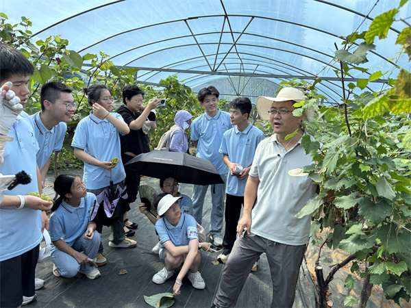 在武汉植物园园艺作物逆境生物学研究组长辛海平研究员指导下,同学们通过科学方法系统比较了三种葡萄的果实形状差异:野生葡萄果粒小、酸涩;酿酒葡萄糖度高但籽多;鲜食葡萄则果粒大、甜度高且部分无籽或少籽