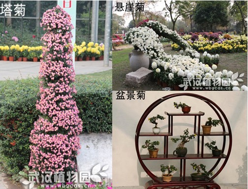 造型菊依样式的不同,分为大立菊、塔菊、悬崖菊、盆景菊等。