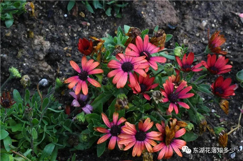 蓝目菊Osteospermum ecklonis (DC.) Norl.,又名非洲万寿菊、非洲雏菊、大花蓝目菊,花色极多,花大,植株低矮,很适合做观赏地被。