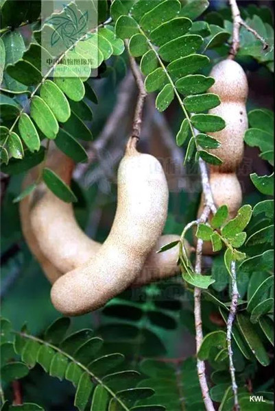酸角(Tamarindus indica),又名酸豆、罗望子,原产于非洲热带稀树草原,是一种药食两用的常绿乔木。酸角树生长缓慢,十年生长,十年开花,十年结果,寿命长达200年,其中经济寿命约为100年。酸角耐干旱、喜光照,适宜干热河谷种植,在云南、海南和两广等地的房前屋后甚为常见。其树干高大、粗壮,树叶疏朗,常年绿树成荫,枝头挂着一串串棕褐色的弯钩状荚果,荚果常不规则地缢缩,看起来有点像干桂圆。