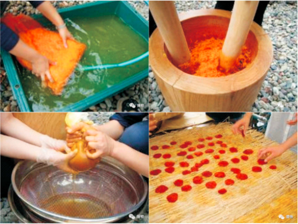 要想用红花为衣物染色,并非想象中那么简单。首先,需要将红花制作成红花饼,而红花饼的制作在人类染色史上占有及其重要的地位。