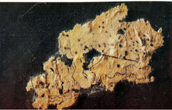 甘肃放马滩西汉墓出土的麻纸(图片来源:国际在线网)