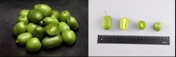 狗枣猕猴桃的果体娇小,平均单果重23g,果形呈圆柱或近圆形,口感非常甜,具有凤梨风味。而且,这一品种非常耐寒,在我国多数在东北地区分布,可在其它果树难于生存的高纬度地区种植。但由于果实小且极不耐贮藏,很难规模商业化推广。
