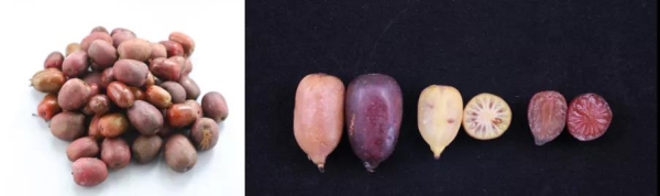 果肉颜色变化主要受叶绿素、类胡萝卜素和花青素的影响,三者组合方式不同可以使果实颜色呈现粉色、砖红色、黄色、橘黄色等一系列变异。