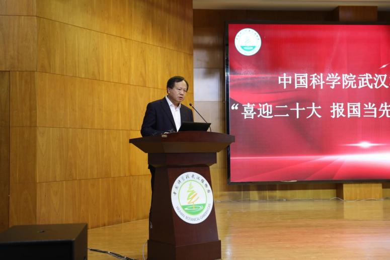主任王青锋表示,要深刻理解、时刻牢记,科学家精神是具有爱国主义情怀的科学家们为国奋斗的精神积淀,是推动科技创新、国家富强、人类文明进步的精神源泉和宝贵财富。他强调,要发挥武汉植物园核心特色与优势,持续推进国家重点实验室、国家植物园工作;要进一步明确优势学科领域方向,服务国家战略,进行重点攻关;要进一步加大人才工作力度,统筹加强人才培养、引进和使用工作;要充分发挥科研平台的支撑作用,为推进生物多样性保护作出实实在在的贡献。