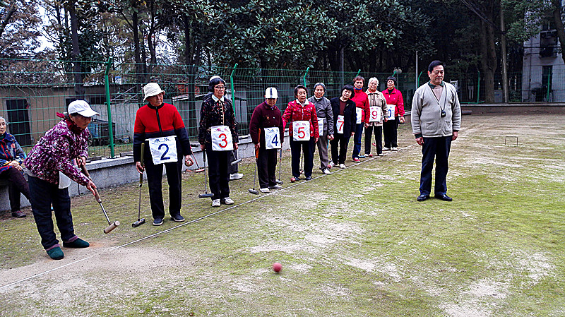11月19日,阳光灿烂,风和日丽,武汉植物园近30位退休职工兴高彩烈地聚集在植物园小区门球场上举行冬季门球比赛。报名参加本次比赛的退休职工年龄跨度大,最大年纪的80多岁,最“年轻”的也近60岁。大家通过抽签分为4个小队,在球场上展开了激烈的循环赛。