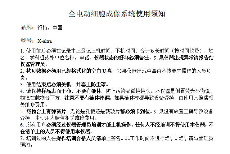 全电动细胞成像系统使用须知