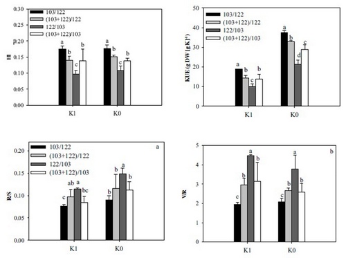 不同嫁接组合钾利用效率数据分析图