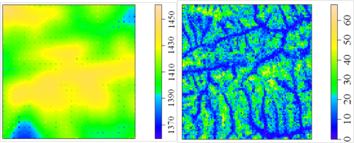 八大公山25 ha样地地形图及个体分布图(栅格大小5 m ×5 m)