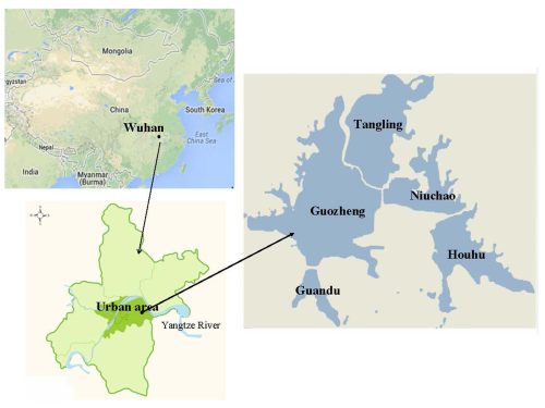 武汉东湖示意图(东湖是中国最大的城市内湖,位于湖北省武汉市,包括官渡湖、郭郑湖、牛巢湖、汤菱湖、后湖)