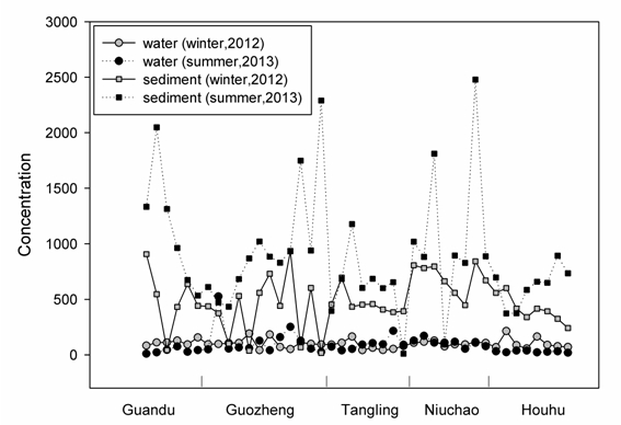 东湖水体及沉积物中多环芳烃浓度的季节性变化