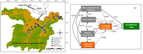 受人类长期活动和氮磷输入的影响,长江流域超过80%的湖泊已处于富营养化状态。微生物介导的沉积物反硝化作用是湖泊最关键的脱氮过程,受到多种生物和环境因子的协同调控。到目前为止,人们对沉水植被、反硝化微生物、水质和底泥性质在反硝化脱氮过程中的相对作用还了解甚少。
