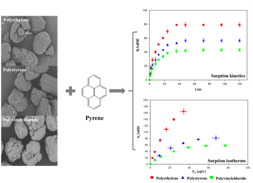 重点实验室博士研究生王文锋在王俊研究员的指导下,通过模型比较的方法,研究了常见有毒环境污染物——芘在三种微塑料(聚苯乙烯、聚氯乙烯、聚乙烯)上的吸附过程。结果表明,微塑料对芘的吸附过程符合pseudo-second-order动力学模型(R2 > 0.99),吸附速率主要受粒子内扩散影响。吸附平衡用Langmuir等温线模型拟合优度最高(R2 > 0.99)。研究结果为进一步了解微塑料与环境有机污染物的相互作用机制方面提供了有用信息。