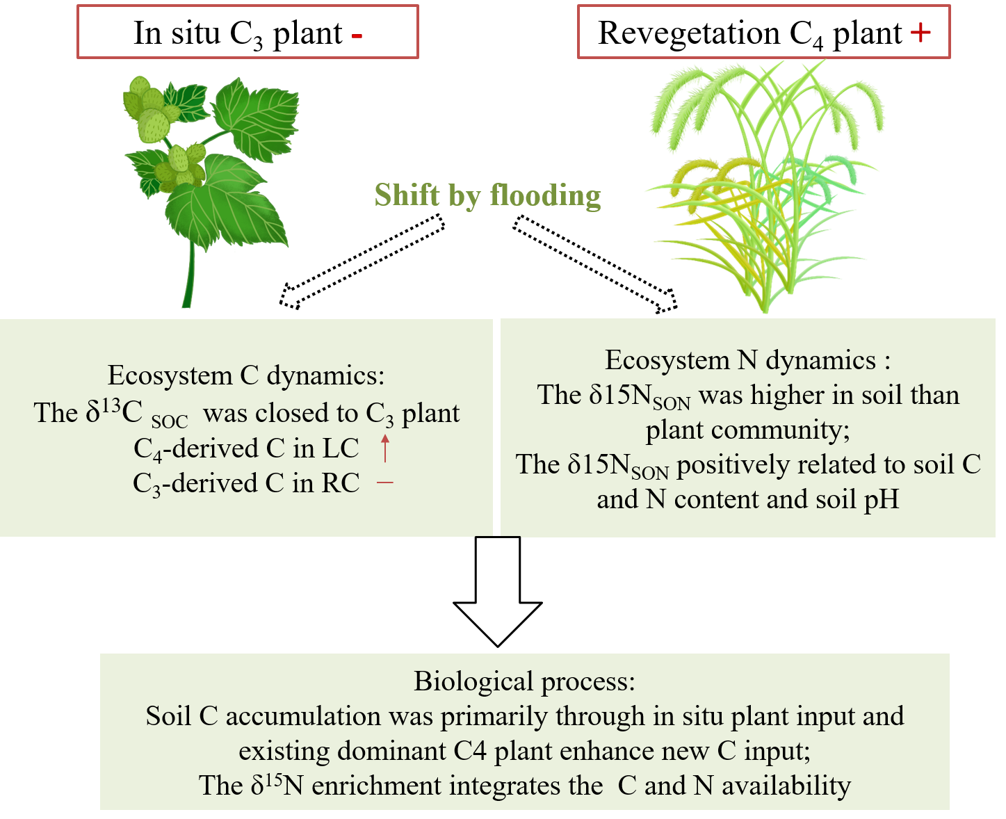 重点实验室在淹水对消落区植被群落和植被-土壤δ13C和δ15N特征的影响取得进展