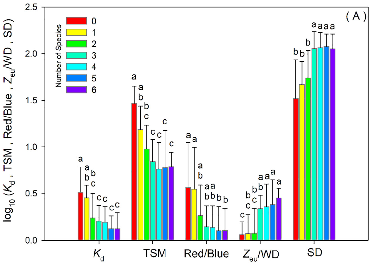 中国科学院水生植物与流域生态重点实验室、武汉植物园湿地生态学学科组博士研究生刘寒等在刘贵华研究员和邢伟研究员的指导下,对长江中下游19个湖泊进行了详细的沉水植被及其环境调查,以期通过野外数据初步解决上述问题。研究结果表明,水体营养盐(TN和TP)与光衰减系数(Kd)和红/蓝比值呈正相关,表明较差水质可显著降低水体透明度。路径分析结果表明,水下光气候是影响沉水植物形态性状、生理性状和物种丰富度的直接因素。功能性状的变化对沉水植物的物种丰富度也有显著影响。研究指出,三种或三种以上沉水植物的物种组合(species assemblage)可以显著改善长江中下游富营化湖泊水体的透明度,但对富营养湖泊水质的改善显著。穗花狐尾藻和苦草的基础物种组合可用于长江中下游富营养化湖泊沉水植物的恢复中。我们的研究表明,物种丰富度和物种组合是浅水富营养化湖泊沉水植物恢复的关键。 本研究可为我国长江中下游富营养化湖泊沉水植被的分区分步恢复和清水稳态的长效维持提供理论指导。