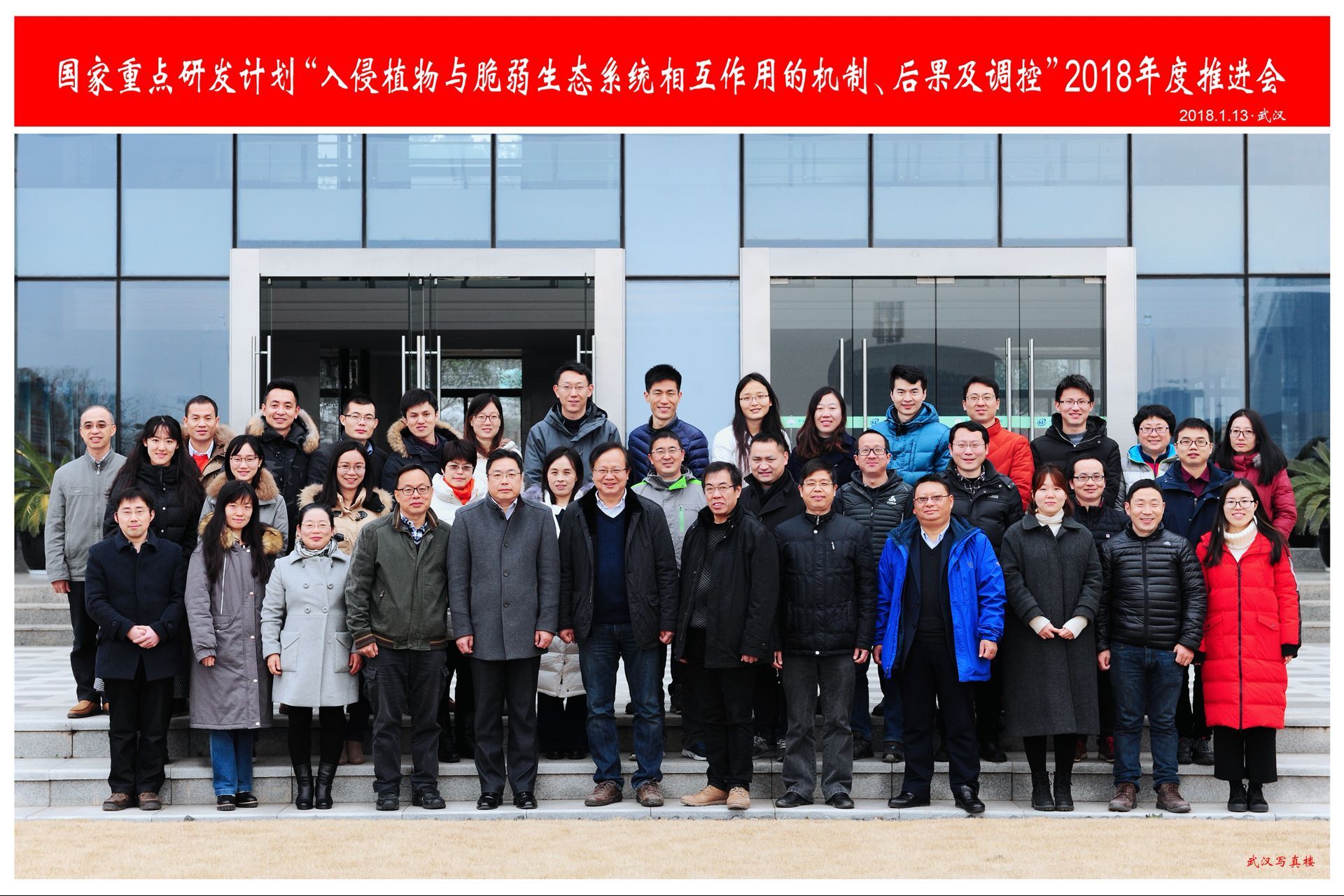 国家重点研发计划项目“入侵植物与脆弱生态系统相互作用的机制、后果及调控”2018年度项目推进会于1月13-14日在武汉植物园光谷园区召开。该项目由复旦大学牵头承担,项目负责人、各课题负责人等项目团队成员、项目牵头单位和参与单位科研管理部门领导40余人参加会议。武汉植物园主任张全发,副主任王青锋,科研处长刘贵华出席欢迎仪式并致辞。