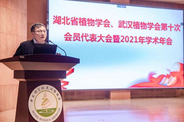 12月30日,湖北省植物学会、武汉植物学会第十次会员代表大会在武汉植物园光谷园区召开。湖北省植物学会第九届理事会理事长张全发、武汉植物学会第九届理事会理事长王青锋、湖北省植物学会和武汉植物学会第九届理事会副理事长余龙江、赵洁、黄双全,湖北省科协学会部唐利红副部长、武汉市科协学会部杜循刚部长、秦冕科长及来自武汉植物园、武汉大学、华中科技大学、华中农业大学、华中师范大学、湖北大学等会员单位代表共200余人参加会议。会议由武汉植物园科研处处长陈良主持。