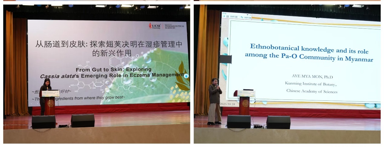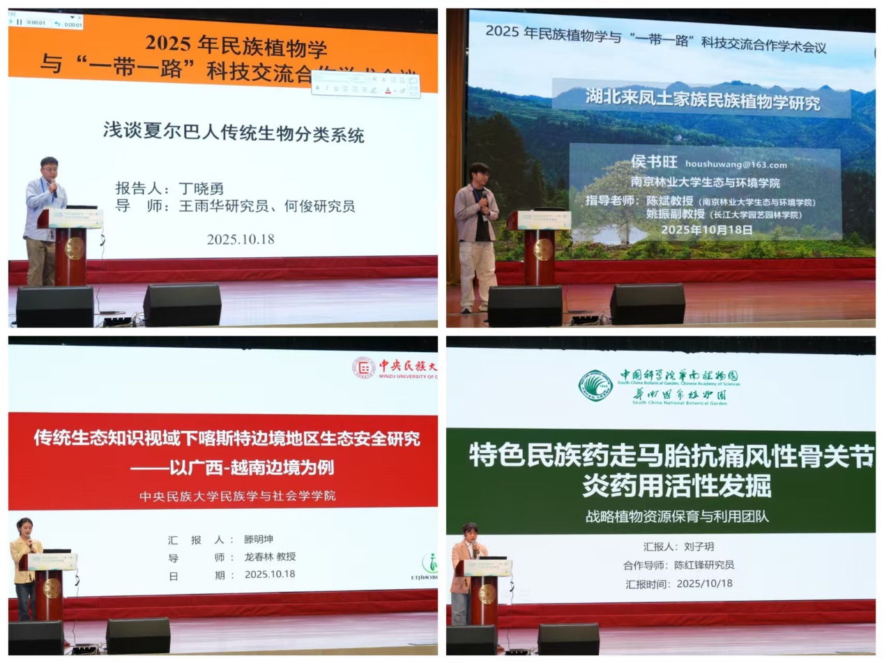 本次会议吸引了众多“一带一路”沿线国家专家的深度参与,国际化学术交流成为一大亮点。 来自泰国清迈大学的Angkhana Inta教授分享了泰国与印度之间的跨文化民族植物学比较研究;尼泊尔特里布文大学的Yadav Uprety博士系统综述了尼泊尔民族植物学的发展趋势;泰国Kanchit Thammasiri博士与马来西亚UCSI大学的Chew Yik Ling博士则分别就药用植物保护与植物在健康管理中的新应用发表了见解。此外,来自马达加斯加和缅甸的青年学者们也报告了他们在本土社区传统植物知识挖掘与保护方面的最新工作,充分体现了“一带一路”科技交流的广度与深度。