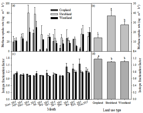 图2 土地利用变化对甲烷氧化速率及其同位素分馏的影响