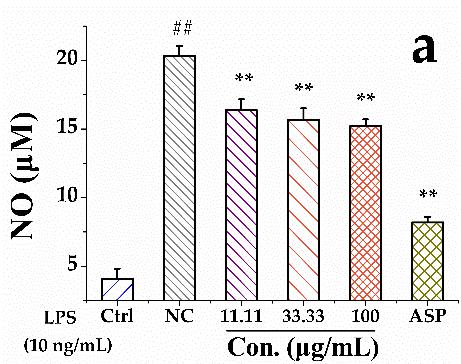 图1. 鼠李提取物显著抑制炎症因子NO的产生、COX-2酶活性